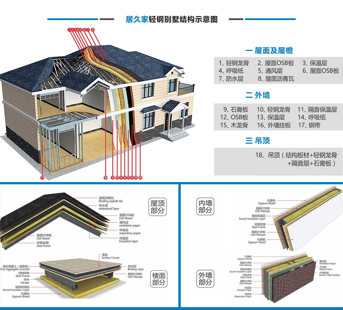 居久家輕鋼別墅隸屬于四川萬建城建筑工程有限公司,集科研、設(shè)計、咨詢、加工、生產(chǎn)安裝為一體。一直致力于新型輕鋼結(jié)構(gòu)房屋的研究、開發(fā)和應(yīng)用,倡導(dǎo)房屋建筑的設(shè)計和應(yīng)用在標(biāo)準(zhǔn)化、模塊化、通用化、規(guī)模化生產(chǎn)的同時,實現(xiàn)人居環(huán)境的個性化、人性化、以及健康和舒適。 公司目前引進(jìn)具有國內(nèi)先進(jìn)水平輕鋼結(jié)構(gòu)房屋建筑技術(shù)和生產(chǎn)線,標(biāo)準(zhǔn)化、精細(xì)化和定制化設(shè)計、制造、安裝輕鋼結(jié)構(gòu)房屋。不僅能夠提供風(fēng)格各異的別墅建筑,同樣能夠提供行業(yè)標(biāo)準(zhǔn)的輕鋼樓宇建筑及建筑群。居久家裝配式房屋技術(shù)體系是高效節(jié)能型綠色建筑體系,各項建筑物理性能卓越,處于業(yè)內(nèi)先進(jìn)水平,能夠為客戶提供全程模塊化綠色建筑集成解決方案。